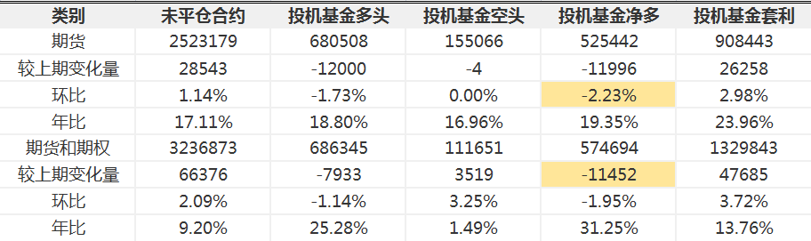 从头寸变动来看,统计周期内